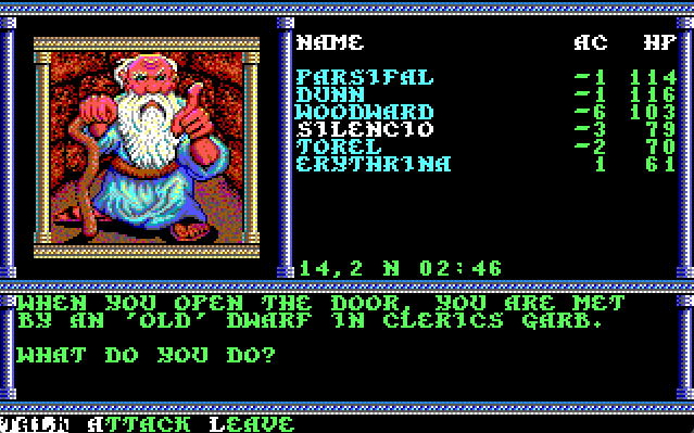And at last the quest can properly begin. Derf (Delf, in some sources) needs a magic staff. First stop – returning to New Verdigris to devise a search plan. Unfortunately Erythrina was distracted and the party forgot to activate the temple portal before leaving. A long trek back awaits at the quest’s end.
